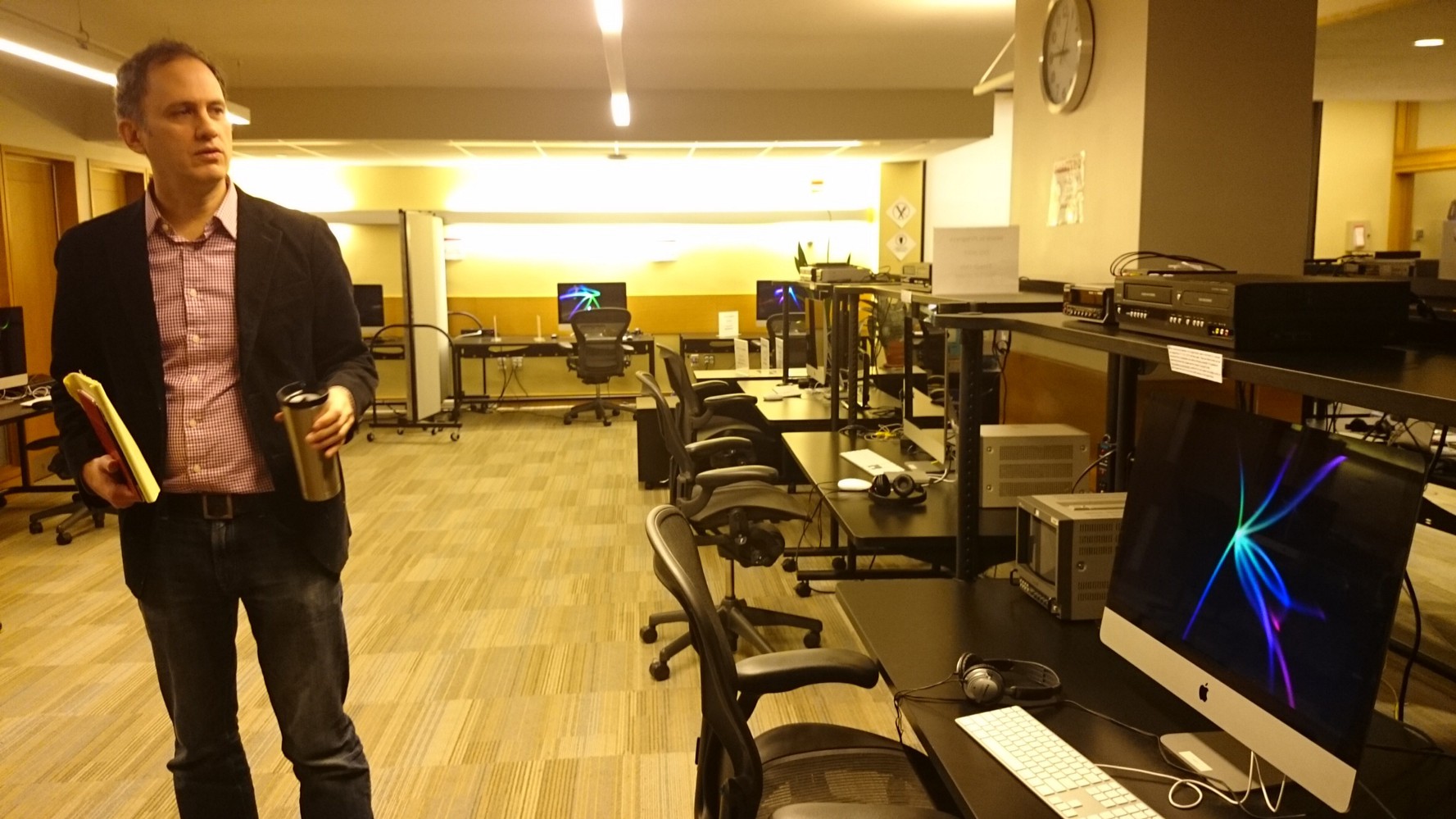 As an introduction before meeting up with a very much anticipated talk to Scott and the other co-cordinator, Stratos Efstathiadis from IT Services, about the higher level strategic angle in running a data service, we we’re shown around in the physical space, that consisted of a lot of well equipped lab workstations with up-to-date hardware and tailored methodological software for various academic disciplines. What struck me the most and what more and more also is the reality of university students in Denmark bringing their own devices, was the hardware choice and almost only unique support of Mac. We definetely need adjustment to this development as well as our often used mantra in the sector is that “we need to meet our patrons at eye level and where they are” (at a matter of both hardware and software requirements).