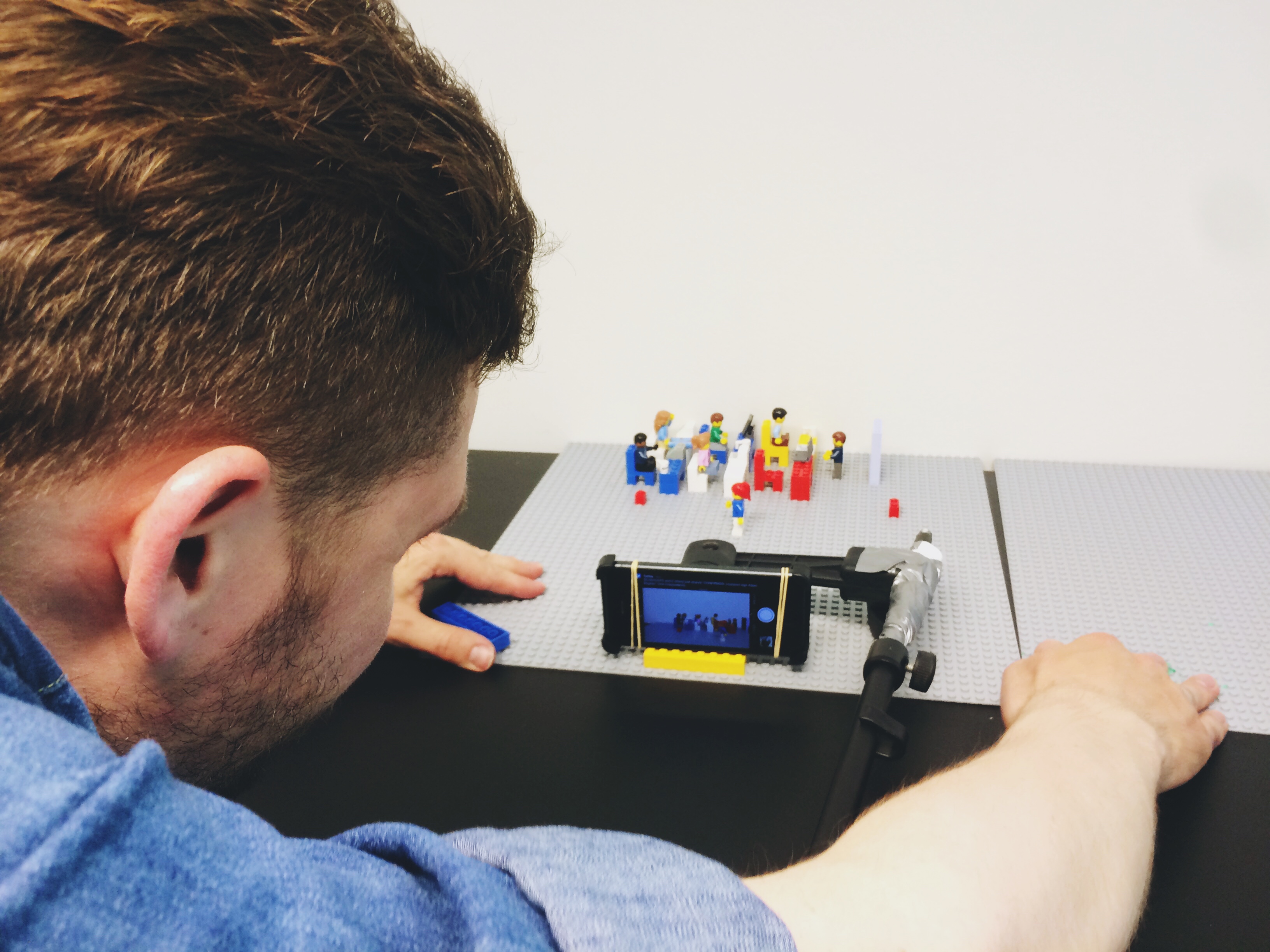 The movie is made with stop-motion technique were objects are moved in small increments between individually photographed frames, creating the illusion of movement when the series of frames is played as a continuous sequence. The movie is simply made with an iPhone 5 and the free stop-motion app iMotion. The sound and speak is recorded directly into a Macbook and both movie, sound and speak was edited in iMovie. After the voice recording the sound files was cut into different pieces so it could be puzzled into the different scenes of the films. For scenografic we sat up a little LEGO Lab in a meeting room with different background photos of library scenes (from the different faculty libraries under the university library) and a lot of LEGO.