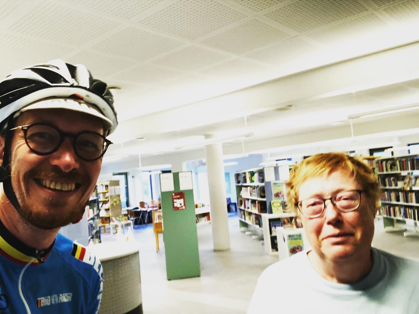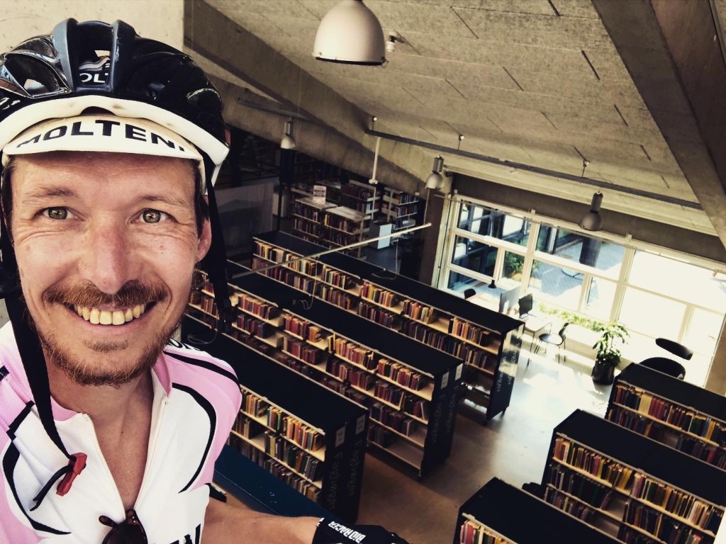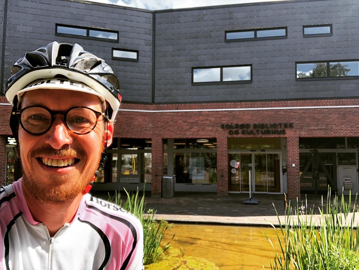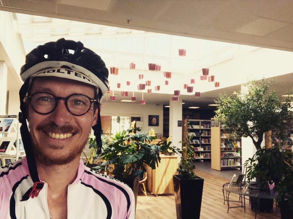 Rønde Public Library is a great one-room library and greated me with some cool cycling books and fresh cold water 🙏