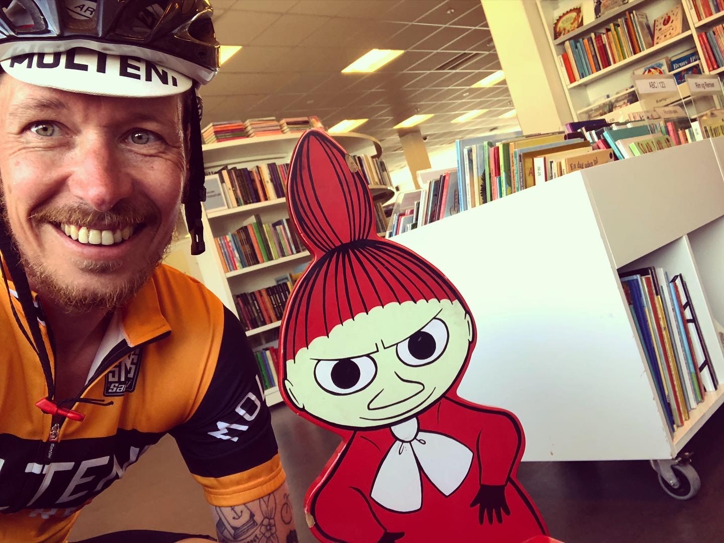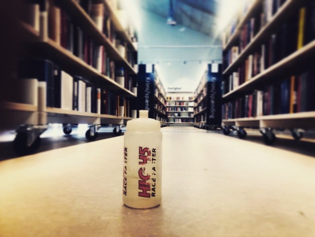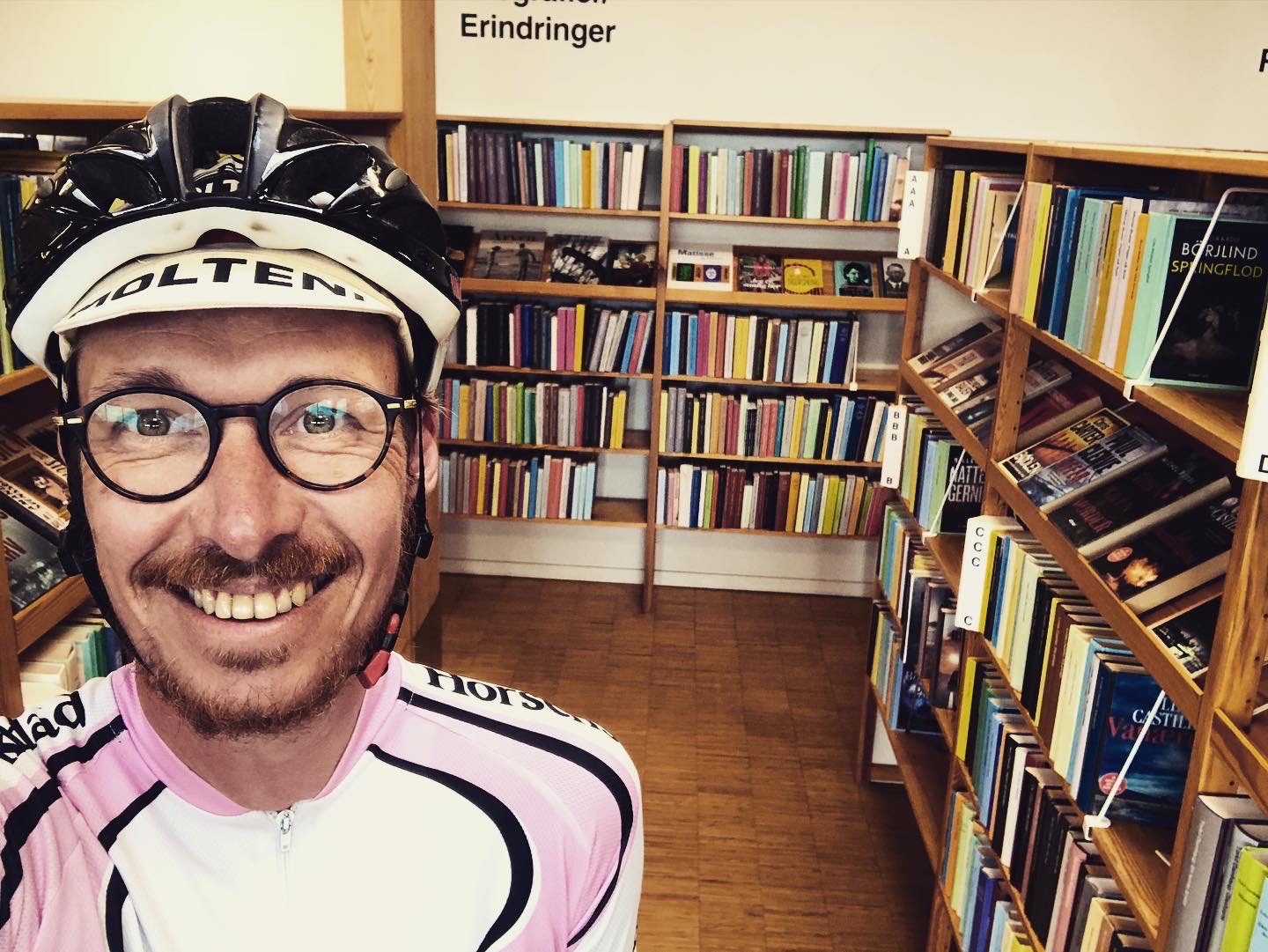 Rønde Public Library is a great one-room library and greated me with some cool cycling books and fresh cold water 🙏