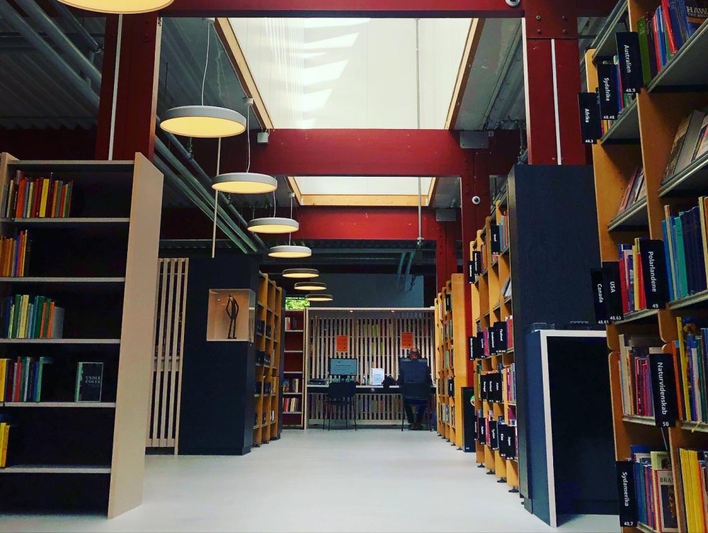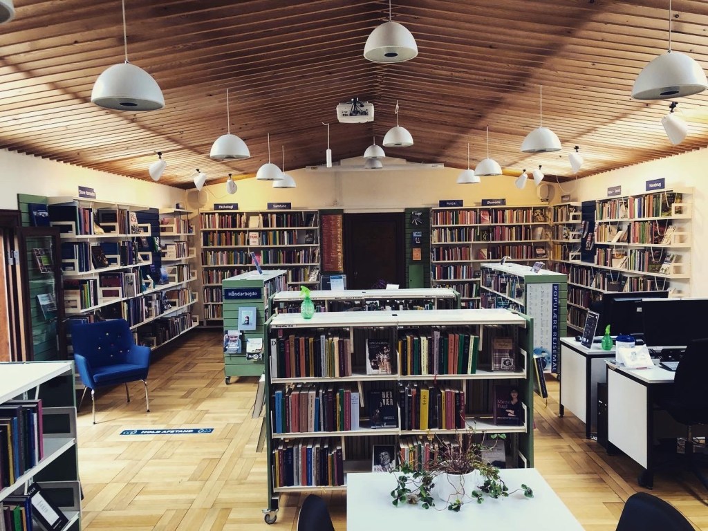 The library was just closing as I came but I ran into the local librarian, Jonna, which both provided me with fresh cold water and a great chat about librarianship, community service and skills. Jonna been a librarian for 40 years and knows what it is all about – super lovely to meet her. Vinderup Public Library is a classic one-room library, neat collection and the best of staff