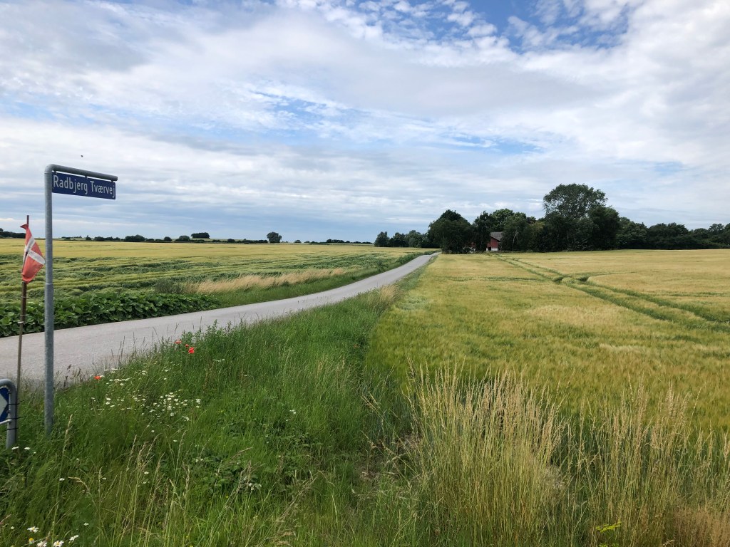 34 km at Falster in the southern part of Denmark. Hilly and open landscape with lots of fields and space. Stopped at Guldborgsund Public Library in the city of Nykøping. Neat library which matches the landscape – lots of space and openness. The cold tap water was also great 🙂