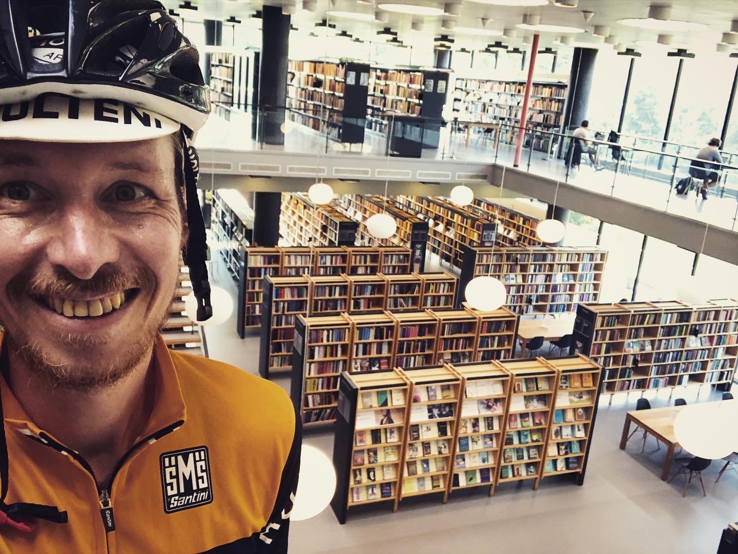 24 neat km towards Aarhus and one of the greatest libraries in the world, Dokk1. The route was excellent with sunny roads by the sea and Dokk1 is always a huge pleasue to visit; buzzing community, happy kids, concentrated students, a world of knowledge to explore in outstanding architecture. Thrilled to meet a great painting of poet and lifelong cycling aficionado Jørgen Leth.
